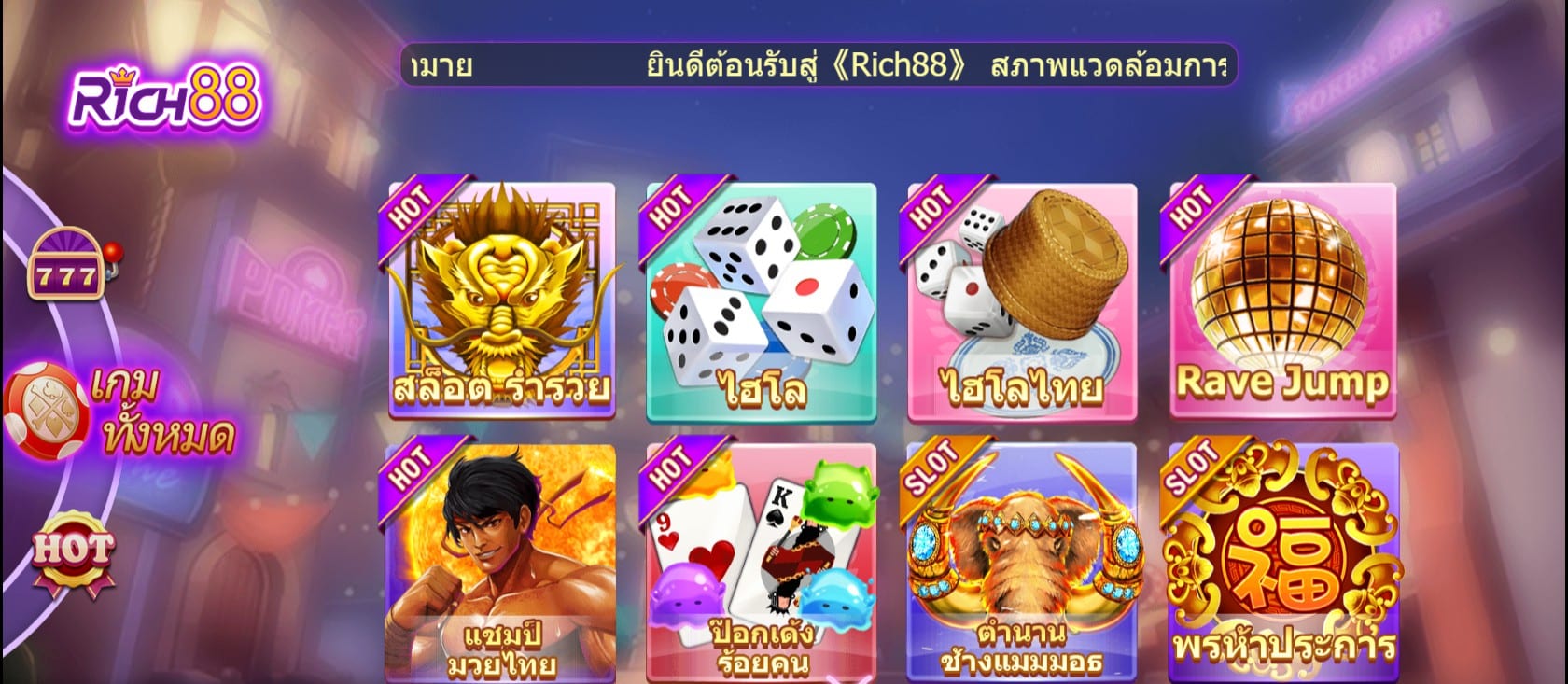 RICH88 รวมเกมส์สล็อตมากมาย และการพนันพื้นบ้านที่ทุกคนต้องรู้จัก ไฮโลไทย ป็อกเด้งเรามีให้หมด